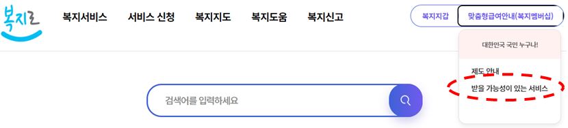 3) 가입 후 복지로 사이트 우측 상단 "맞춤형 급여안내(복지멤버십)" -> "받을 가능성이 있는 서비스" 여기를 클릭하시면 알림이 오기 전에 지금 혹시 혜택을 받을 수 있는 복지 서비스를 검색하실 수 있습니다.